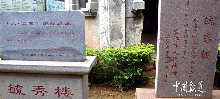 1958年8月23日下午5時(shí)30分,圍繞金門的圍頭、大嶝、石井、蓮河、廈門的我軍炮兵,在兩個(gè)多小時(shí)的炮擊中,向金門島發(fā)射了3萬(wàn)多顆炮彈。“8·23”炮戰(zhàn)正式拉開(kāi)了帷幕。如果說(shuō)“8·23”炮戰(zhàn)在50年前確立了臺(tái)海雙方軍事對(duì)峙的局面——雙方的主要對(duì)抗實(shí)際上已經(jīng)轉(zhuǎn)移到國(guó)際政治舞臺(tái),那么,圍頭半島在這場(chǎng)戰(zhàn)爭(zhēng)中扮演了至關(guān)重要的角色。靜默的毓秀樓見(jiàn)證了這場(chǎng)威震中外的戰(zhàn)爭(zhēng)。我在50年后的夏天重新深訪了她滄桑的容顏:圍頭村委辦公大樓后面,典型的民國(guó)時(shí)期建筑風(fēng)格的兩層小洋樓,殘?jiān)票冢T扉緊閉,在周圍嶄新的民房之間,顯得那樣惹眼,那般落寞。聽(tīng)同行的朋友介紹,毓秀樓是上世紀(jì)30年代一位吳姓華僑修建的,炮戰(zhàn)時(shí)成為海軍某連的連部,其大門正對(duì)面不足五米的地方就是海軍指揮所。炮戰(zhàn)一開(kāi)始,高聳的樓房就成了敵人射擊的目標(biāo),先后有6發(fā)炮彈打進(jìn)了毓秀樓,門亭、圍墻、房頂、窗臺(tái)被打穿了幾個(gè)大洞。傾斜的門亭由兩支磚柱支撐著,兩塊醒目的標(biāo)識(shí)“彈著點(diǎn)”懸掛在黑褐的墻壁上,兩桿廷院燈是簇新的,倒反襯出毓秀樓的老舊與殘破。無(wú)論如何,她是50年前那一場(chǎng)戰(zhàn)爭(zhēng)的親歷與見(jiàn)證者。