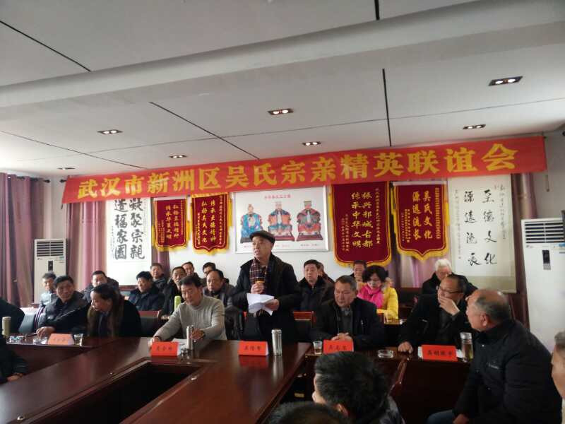 春回大地萬象新,吳家業(yè)旺人更旺!值此新年來臨之際,我們非常高興來參加新洲吳氏宗親精英聯(lián)誼活動,借此機會,我代表湖北省吳氏文化研究會向今天的盛會活動表示熱烈的祝賀,向參加今天盛會的各位宗親致以新年的問候和誠摯的祝福!