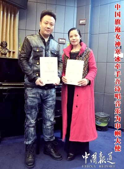 中國旗袍女神寒冰牽手吾詩唱音樂為巾幗大使