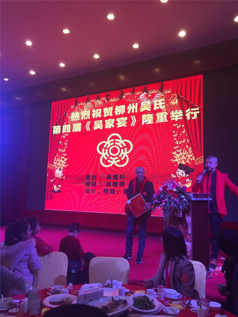 2018年2月3日,廣西柳州吳氏第四屆《吳家宴》在柳州三中路金惠大酒樓舉行。廣東珠三角吳氏宗親總會(huì)常務(wù)副會(huì)長吳鎮(zhèn)添為團(tuán)長,帶領(lǐng)副秘書長吳長根、吳長財(cái)和吳涌君宗長四人前往參加這次盛宴,并帶上宗誼、帶上廣東珠三角品牌“吳氏陳皮·小青柑茶” 展開宗誼交流和興業(yè)中華·商貿(mào)品牌推介合作探索之旅。