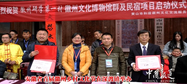 中國報道訊(記者吳蜀豐)首屆徽州鄉(xiāng)村文化節(jié)2018年2月14日在安徽省黃山市歙縣深渡鎮(zhèn)舉辦,來自澳大利亞、法國、荷蘭和國內(nèi)外的幾十位文化、旅游專家學(xué)者和產(chǎn)業(yè)界人士組成的嘉賓團(tuán),以及從遠(yuǎn)在百余公里之外、著名的戲劇之鄉(xiāng)——祁門趕來的兩個農(nóng)民表演團(tuán)隊參加盛典。