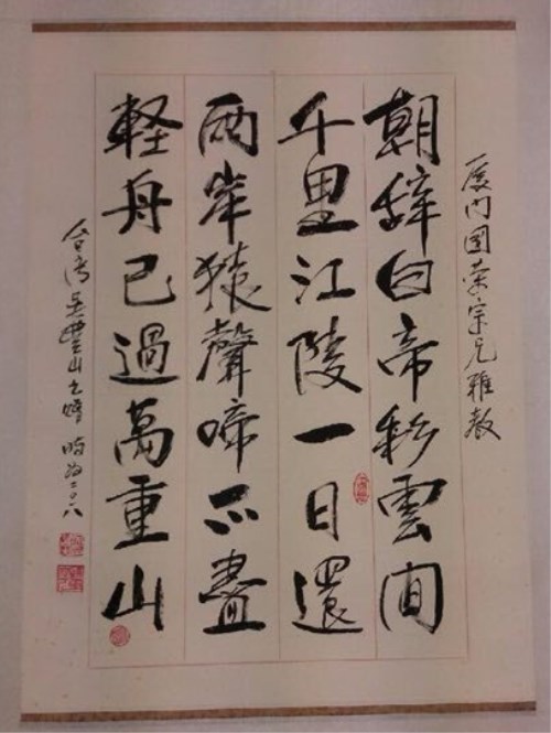 吳國(guó)榮宗長(zhǎng)收到臺(tái)灣吳豐山宗長(zhǎng)的墨寶
