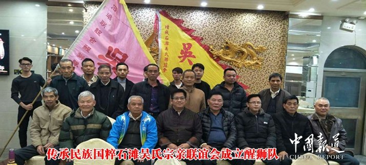 中國(guó)報(bào)道訊(記者吳蜀豐 特約采編吳昌祿)為了更好傳承中華民族國(guó)粹文化,弘揚(yáng)民族優(yōu)秀文化精神,2017年2月22日(農(nóng)歷正月初七),在廣東珠三角吳氏宗親總會(huì)執(zhí)行會(huì)長(zhǎng)、增城區(qū)石灘吳氏宗親聯(lián)誼會(huì)會(huì)長(zhǎng)吳蕭麟等宗親的倡議和組織下,廣州市增城石灘吳氏宗親聯(lián)誼會(huì)醒獅隊(duì)在增城區(qū)石灘鎮(zhèn)海景酒樓正式成立。