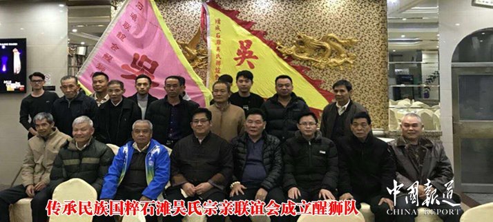 中國報道訊(記者吳蜀豐 特約采編吳昌祿)為了更好傳承中華民族國粹文化,弘揚民族優(yōu)秀文化精神,2017年2月22日(農(nóng)歷正月初七),在廣東珠三角吳氏宗親總會執(zhí)行會長、增城區(qū)石灘吳氏宗親聯(lián)誼會會長吳蕭麟等宗親的倡議和組織下,廣州市增城石灘吳氏宗親聯(lián)誼會醒獅隊在增城區(qū)石灘鎮(zhèn)海景酒樓正式成立。