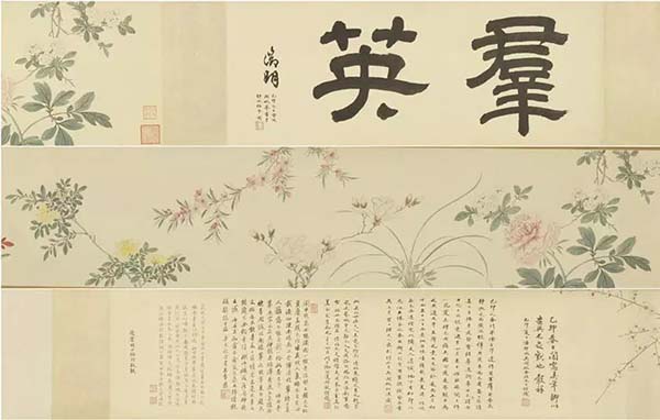 “梅景傳家——蘇州吳氏的收藏”從祖父吳大澂開(kāi)始,就以所藏青銅器、玉器、書(shū)畫(huà)、碑帖、古籍、文房等聞名江南,至梅景書(shū)屋主人吳湖帆,在繼承祖父藏品的基礎(chǔ)上,繼續(xù)四方蒐集書(shū)畫(huà)、碑帖,因此成為近代最著名的書(shū)畫(huà)家、鑒賞家。2018年1月底,展覽推出第二期展品,如今去展廳可以看到沈周《有竹鄰居圖卷》、唐寅《墨牡丹圖》(扇頁(yè))以及吳湖帆、潘靜淑《臨王榖祥群英圖卷》等。