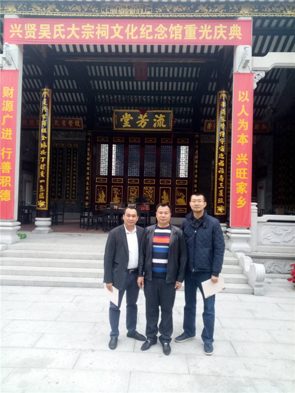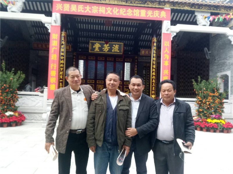 2018年2月23日(農(nóng)歷正月初八),香港泰伯基金會(huì)常務(wù)會(huì)長、珠三角吳氏宗親總會(huì)會(huì)長吳錦添,香港泰伯基金會(huì)常務(wù)會(huì)長、珠三角吳氏宗親總會(huì)常務(wù)副會(huì)長吳建忠,珠三角吳氏宗親總會(huì)副會(huì)長吳星顯,廣州吳平治等吳氏宗親前往佛山興賢吳氏大宗祠與佛山吳氏宗親吳杰棠、吳鎮(zhèn)、吳建宏等宗親一起觀看醒獅表演和進(jìn)行宗親交流,共賀新春佳節(jié)。(撰稿 吳昌祿)