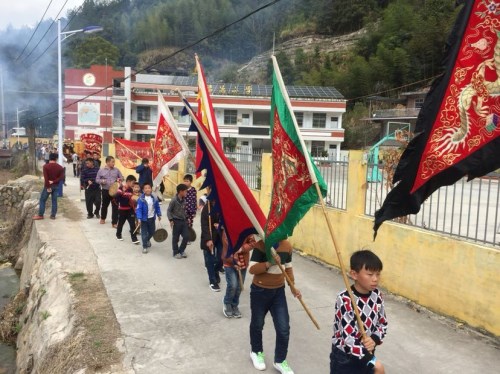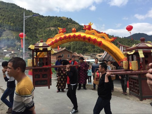 正月十五夜,巡境“踩龍”迎燈會習(xí)俗活動。家家戶戶一塊長5米左右的木排,按照比率用竹簽定好骨架。用各色彩紙或者灑金宣紙,裁成符合燈籠骨架的長寬,兩邊貼上剪紙,里面點著蠟燭。再一家家的接起來,就組成了千米火龍,加上各戶門前燃起的篝火還有禮花,成了火樹銀花不夜天的小山村。燈會完后,村民們會到“金鉤堂”許愿還愿,觀看煙花表演,很是熱鬧!迎燈會是傳統(tǒng)元宵賞燈習(xí)俗中的一種獨特民間造型藝術(shù),集繪畫、剪紙、編織等于一體,是一種獨特的審美載體。