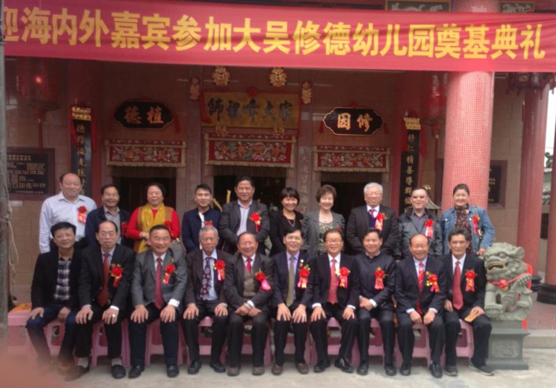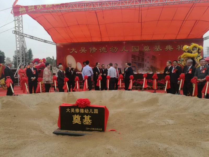 2018年3月6日,大吳修德幼兒園奠基典禮在廣東省潮州市潮安縣浮洋鎮(zhèn)大吳村隆重舉行,第二屆世界吳氏宗親總會主席、香港吳氏宗親會會長吳良民,第六屆世界吳氏宗親總會候任主席、福建廈門宗親會會長吳國榮,河南南陽吳氏文化研究會會長吳雷,廣東兩陸吳文化代會長吳遠(yuǎn)林、常務(wù)會長吳河西,潮汕地區(qū)吳氏宗親總會常務(wù)會長吳漢龍、秘書長吳彬宗長等人應(yīng)邀出席了活動。