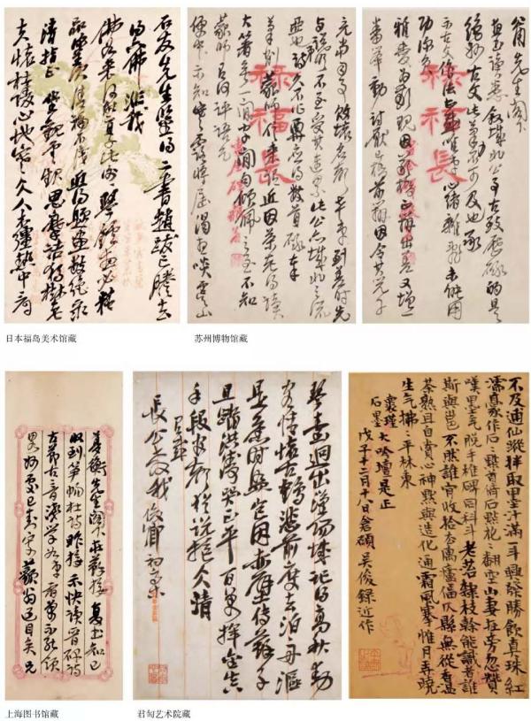 通過這些細(xì)致有加的工作,我們對吳昌碩藝術(shù)人生的認(rèn)識(shí),也比以前更完整,也更客觀?!度贩肿叹怼ň怼⒗L畫卷、文獻(xiàn)卷,文獻(xiàn)卷是《全集》出版后最受專家關(guān)注的內(nèi)容,收入信札650通,詩稿129件,題跋24件,雜件40件,這個(gè)部分新材料是最多的,最受好評。其中信札部分,我們把它們按收信人進(jìn)行了歸類并按時(shí)間先后編排,如此對了解吳昌碩在不同時(shí)間段的生活、交友、游歷、讀書、創(chuàng)作等等狀況,都有了重要依據(jù)。《全集》的編撰規(guī)范而系統(tǒng),顯現(xiàn)出巨大的內(nèi)容價(jià)值,例如通過《全集》將作品圖像信息,以及大量的落款、題跋和信札詩文文稿信息貫穿起來,對探究吳昌碩的創(chuàng)作歷程和心路軌跡,就尤為有益。