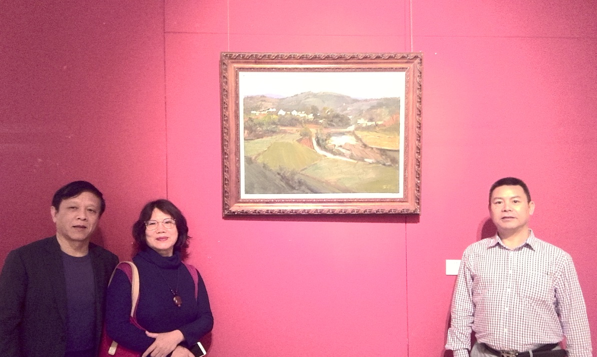 在孫霄先生拜訪海韻大廈之前,3月20日上午,孫霄先生夫婦正在參加鹽田區(qū)政府在深圳關(guān)山月美術(shù)館舉辦的“大美鹽田”美術(shù)、書法、攝影精品展的剪彩活動(dòng)。孫霄先生的夫人邱麗萍女士的油畫作品也在參展之中。邱麗萍女士是客家人,對(duì)著深厚的客家情懷,她利用業(yè)余時(shí)間學(xué)習(xí)油畫創(chuàng)作,成績(jī)斐然。她油畫作品以客家題材為主,多為展示客家人的生活與環(huán)境。