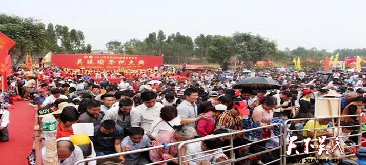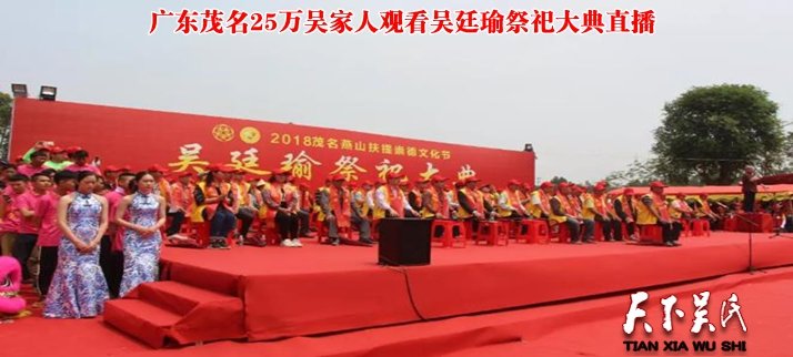 天下吳氏訊(特約撰稿 粵西資訊 )原標(biāo)題《壯觀!茂名吳氏幾萬(wàn)人祭祖,現(xiàn)場(chǎng)直播超25萬(wàn)人同時(shí)觀看》2018年4月1日,農(nóng)歷二月十六,茂名吳氏宗親在茂南區(qū)袂花鎮(zhèn)上村的燕子山隆重舉行一年一度吳氏始祖—吳廷瑜的祭祀大典。據(jù)了解,吳廷瑜是吳氏族人進(jìn)入茂名地區(qū)的第一人,進(jìn)士為官,為此吳氏后人對(duì)他非常敬仰。