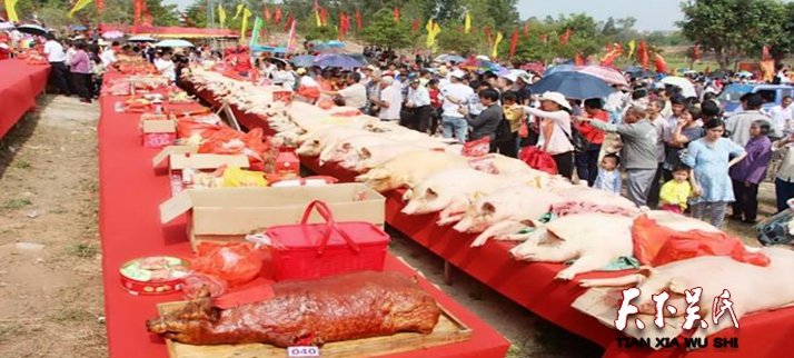 至活動(dòng)結(jié)束,共有25萬(wàn)多人同時(shí)觀看吳氏祭祀大典現(xiàn)場(chǎng)直播。據(jù)了解為了表達(dá)對(duì)吳廷瑜始祖的敬意,各地前來(lái)參加活動(dòng)的代表團(tuán)都會(huì)獻(xiàn)上肥豬等作為貢品。去年的肥豬也近百頭,堆成小山。