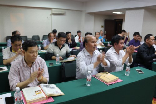 吳健琴大姐的講話使大家受益匪淺,給每亇到會人員極大的鼓舞和啟迪。她指岀:《廣西吳氏才俊》所反映的是廣西吳氏族人的杰岀代表,他們雖然沒當(dāng)什么大官,也沒有做岀驚天動地的大事,而他們在自己平凡的工作崗位上,在自己的人生中為祖國、為社會、為家族默默作奉獻(xiàn),值得弘揚(yáng),值得謳歌。今天《廣西吳氏才俊》發(fā)行的是第一部,介紹457位宗親的事跡,他們中有干部、工人、教師、幼兒教師、村干部、社會團(tuán)體和民間組織領(lǐng)導(dǎo)、民間藝人、能工巧匠,愛國人士和老紅軍、老戰(zhàn)士以及90歲以上的老壽星等等。現(xiàn)編寫完一部遠(yuǎn)遠(yuǎn)不夠,還有很多的吳氏精英,還要把他們事跡總結(jié)出來,還要發(fā)行第二部,第三部……,所以,還需要大家的努力工作。健琴大姐的講話撥得陣陣掌聲。