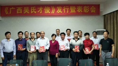 原廣西吳氏聯(lián)誼會執(zhí)行會長吳健琴主編的《廣西吳氏才俊》一書,歷經(jīng)三年的收集、編寫、付印,于2018年3月31日問世?!稄V西吳氏才俊》一書23萬多字,記錄457位吳氏精英的事跡,是難得一本吳氏書籍,是廣西吳氏的重大成果。3月31日晚,該書編委主任、副主任及全體編委會委員及工作人員20多人,在南寧邕桂大酒店隆重召開《廣西吳氏俊》發(fā)行暨表彰大會。
