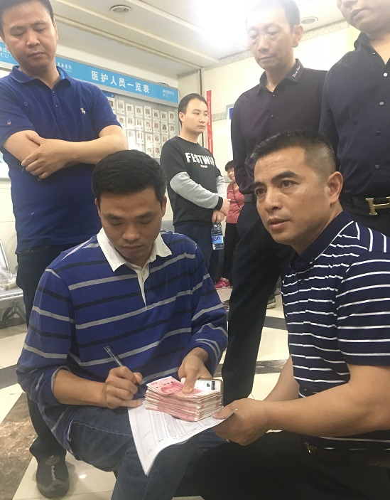 3月27日下午,旅居?xùn)|莞的廣東化州宗親吳勝義突發(fā)腦出血,進(jìn)入東莞東華醫(yī)院重癥監(jiān)護(hù)室,手術(shù)后還未醒過來,需要巨額的醫(yī)療費(fèi)用。東莞吳氏文化交流會(huì)的宗長(zhǎng)們?cè)?月31日得知消息后,決定在莞吳會(huì)的會(huì)務(wù)經(jīng)費(fèi)中拿出2000元,捐獻(xiàn)給吳勝義宗親家屬,然后由創(chuàng)會(huì)會(huì)長(zhǎng)吳年伯宗長(zhǎng)執(zhí)筆發(fā)文,在東莞吳氏文化企業(yè)聯(lián)誼會(huì)的微信群中發(fā)出捐款呼吁,在莞吳會(huì)會(huì)長(zhǎng)吳育坤宗長(zhǎng)的組織發(fā)動(dòng)下,捐款倡議得到了宗親們的積極回應(yīng),至4月2日,莞吳會(huì)己收到實(shí)捐的善款25536.88元,宗親們的善款由莞吳會(huì)領(lǐng)導(dǎo)層在當(dāng)天帶到東華醫(yī)院,轉(zhuǎn)交給吳勝義宗親的家屬,吳勝義家屬表示深深的感謝。