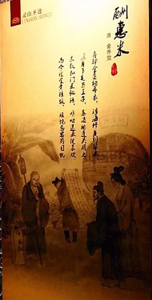唐開元年間,古新羅國(今韓國)王子金喬覺(696----794),浮海來華,入唐求法。肅宗至德二年,輾轉(zhuǎn)來到青陽至吳氏居地,與公“慕道相逢”。“公見而異之,乃授粲贈粟”,供養(yǎng)多日(一說49天),使其恢復(fù)元氣。問知其要上九華山修行,又“移書城峰閔氏之寺居,以為修行之所”。相傳為表達對吳氏的感激之情,地藏曾作《酬惠米》詩相贈(此詩載于唐代《松陽新城里吳氏宗譜》)。