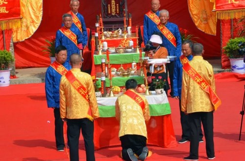九華山老田吳民俗文化活動清明祭祀大典,是皇家的祭祀大典,只傳宮內(nèi),不傳民間。所以老田吳宗譜文藝卷沒有實文記載,只是老田吳禮儀司代代閉門口頭傳授。