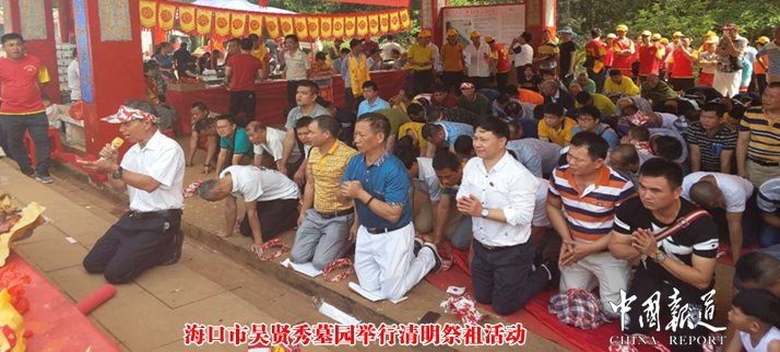 中國報道訊(吳蜀豐特約采編 吳乾山)今天早上(4月4日)美蘭區(qū)演豐鎮(zhèn)龍窩坡吳賢秀墓園人潮涌動,鑼鼓喧天。由??谑袇琴t秀文化研究會主辦的“吳氏家族清明祭祖活動”在此熱鬧舉行。來自全國各地和海外的吳氏同胞紛紛前來,近300人出席了該活動。