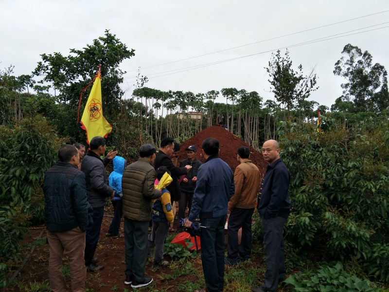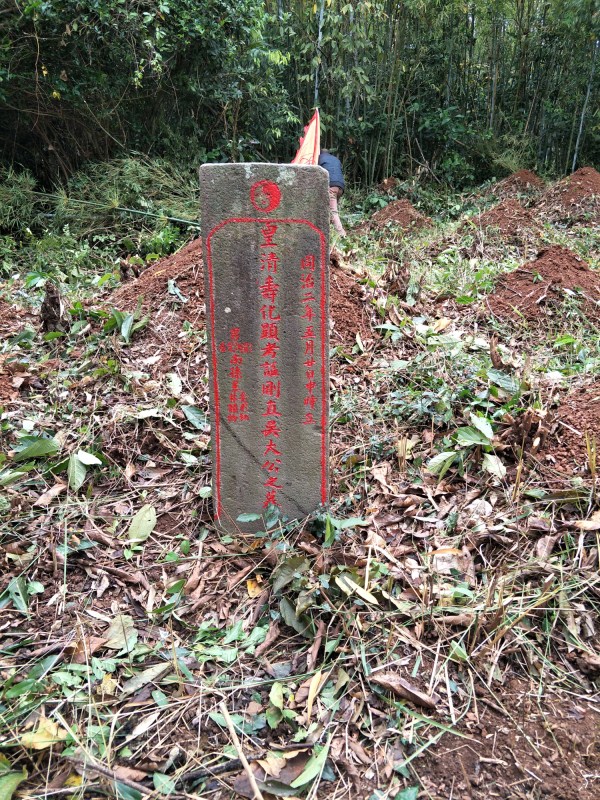由于距離相差較遠(yuǎn),分居南山那屯村、徐城鎮(zhèn)、城北下田村、曲界坡塘村、龍?zhí)伶?zhèn)等地的宗親,今天早早的來到那屯吳氏祠堂會合。上午9:30分,掃墓車隊準(zhǔn)時出發(fā)。排頭車車載祭品、兩邊插吳氏族旗,兩部大巴、20多部小車乘載宗親,一路浩浩蕩蕩,先后前往城北新民村前祭拜應(yīng)平公婆伍氏墓,南山鎮(zhèn)那屯村北積谷堝祭拜周公婆墓、泗子山周公房下雙南公婆墓,曲界鎮(zhèn)坡塘村祭拜員公子仁承公婆、孫千江公婆墓,龍?zhí)伶?zhèn)頭塱祭拜啟公鄭婆墓。下午2:30結(jié)束。后返回祠堂集體用餐。
