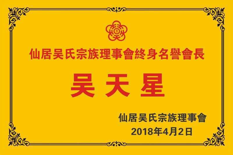 吳靖年宗賢向源一堂吳會(huì)會(huì)長(zhǎng)吳金元授牌