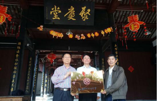 浙吳會(huì)負(fù)責(zé)人與騰蛟吳氏宗祠負(fù)責(zé)人在至德堂前合影