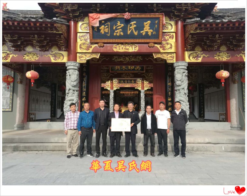省吳會(huì)與諸暨源一堂吳會(huì)負(fù)責(zé)人在文簡(jiǎn)公祠門前合影