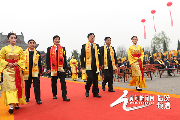 上午9時(shí)許,第二十八屆洪洞大槐樹文化節(jié)尋根祭祖大典在陣陣禮炮聲中正式拉開帷幕。本次大典以“古槐四海連 忠孝清明祭”為主題,嚴(yán)格遵循國家級非物質(zhì)文化遺產(chǎn)——“大槐樹祭祖習(xí)俗”,依次進(jìn)行“恭迎汾河水、舜王土”、“恭請大槐樹移民神主升位”、“鳴炮、啟門”、“敬獻(xiàn)三牲”、“敬獻(xiàn)五谷”、“敬獻(xiàn)肴饌”、“敬獻(xiàn)鮮果”、“敬獻(xiàn)厚土”、“敬香通神”、“奠酒獻(xiàn)禮”、“敬獻(xiàn)花籃”、“恭誦祝文”、“鞠躬辭神”、“敬獻(xiàn)樂舞”等傳統(tǒng)儀程。參祭嘉賓虔誠莊重,移民后裔云集于此,共祭先祖,祈福感恩。