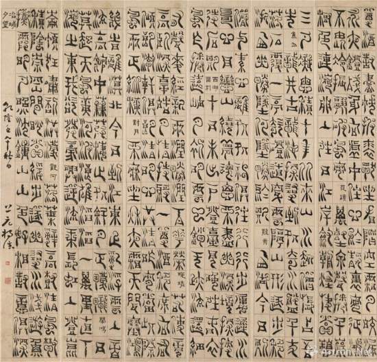 楊法 篆書(shū)六條屏(局部) 紙本水墨96x16.5cmx6