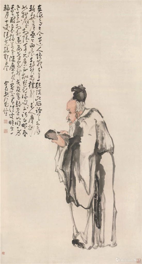 黃慎 玩硯圖 立軸 設(shè)色紙本 196x105.2cm