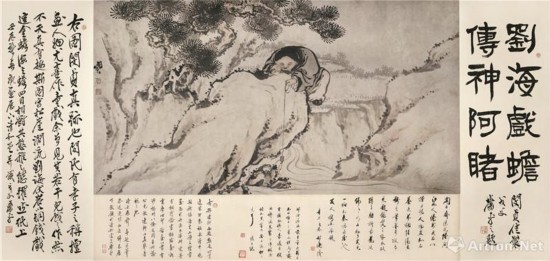 閔貞 劉海戲金蟾圖 鏡片設(shè)色 紙本 92x193cm
