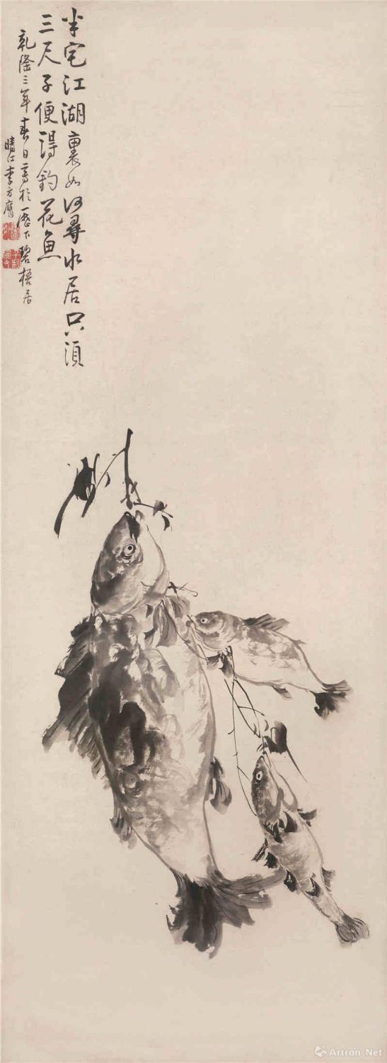 李方膺 三魚(yú)圖(局部) 立軸 122x45cm 水墨紙本