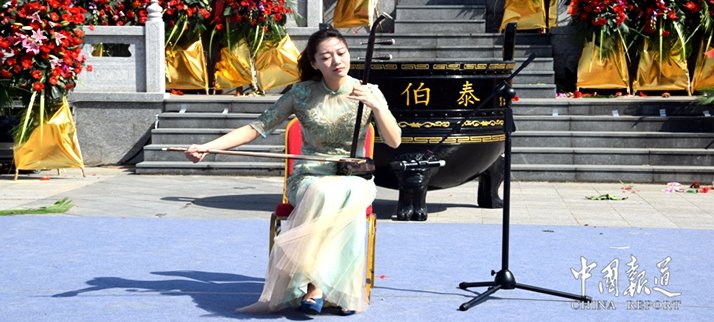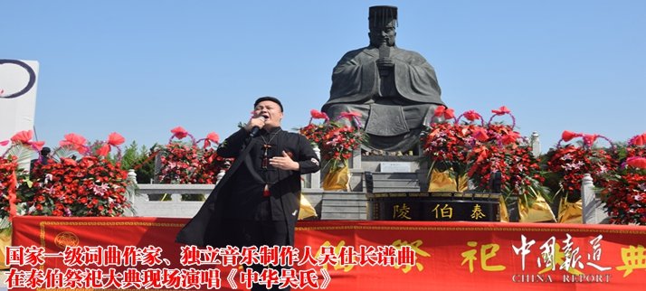 由中華吳氏宗親總會主席吳文富、中華吳氏宗親總會秘書長吳謹程作詞,國家一級詞曲作家、獨立音樂制作人吳仕長譜曲在泰伯祭祀大典現(xiàn)場演唱《中華吳氏》之歌迎來臺下陣陣掌聲。
