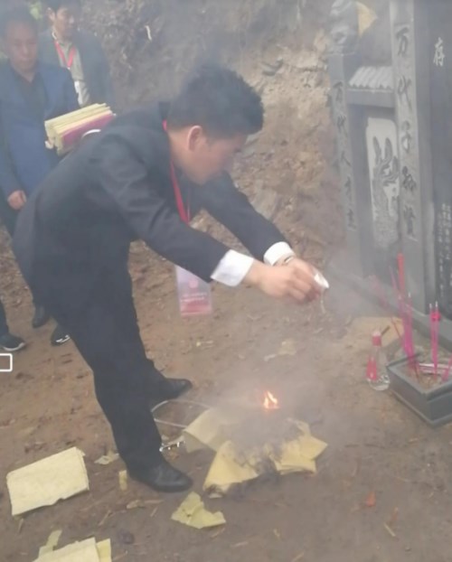 兩地后裔到整修一新的共同先祖吳思賢墓前祭拜。吳文盛、吳敬堂后裔熱淚盈眶,深情相擁。至此,骨肉分離近600年的親人共同完成了尋親尋根的偉大壯舉,成就了數(shù)代人的夢想。