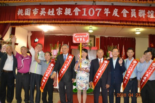 臺灣桃園市吳姓宗親會21日由觀音分會承辦107年度會員聯(lián)誼大會,會中除了舉辦隆重莊嚴的祭祖儀式外,並頒發(fā)獎學金鼓勵吳氏學子努力向?qū)W為吳家增光,年滿88歲的長者頒發(fā)敬老金,此次百歲人瑞有4人,領取敬老金人數(shù)高達188位,中午聯(lián)誼聚餐同時並有安排表演節(jié)目大家公樂,明年輪由大園分會承辦並辦交接信物儀式。