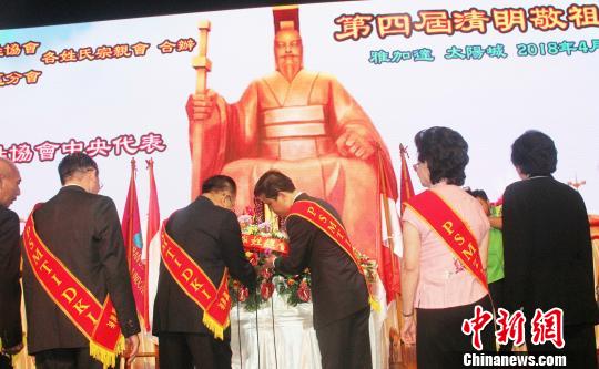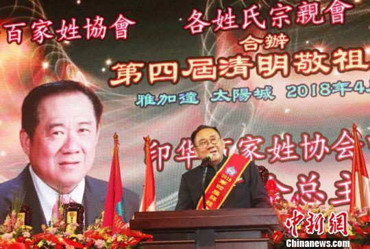 中新網(wǎng)雅加達(dá)4月22日電 (記者 林永傳)由印尼印華百家姓協(xié)會總會、雅加達(dá)特區(qū)分會和各姓氏宗親會聯(lián)合舉辦的第四屆清明敬祖大典,22日假雅加達(dá)太陽城千人宴會廳舉行,近1500名華人華僑帶著虔誠與感恩的心,共同敬拜中華民族始祖黃帝,祭拜了各姓氏的祖先。