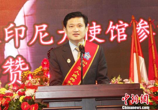 由印尼印華百家姓協(xié)會總會、雅加達(dá)特區(qū)分會和各姓氏宗親會聯(lián)合舉辦的第四屆清明敬祖大典,22日假雅加達(dá)太陽城千人宴會廳舉行,近1500名華人華僑帶著虔誠與感恩的心,共同敬拜中華民族始祖黃帝,祭拜了各姓氏的祖先。圖為中國駐印尼大使館領(lǐng)事部參贊祝笛到場致辭?!×钟纻鳌?