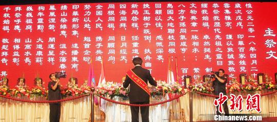 主祭人恭讀祭文后,合唱團(tuán)獻(xiàn)唱《黃帝頌》和《百家姓一家親》。