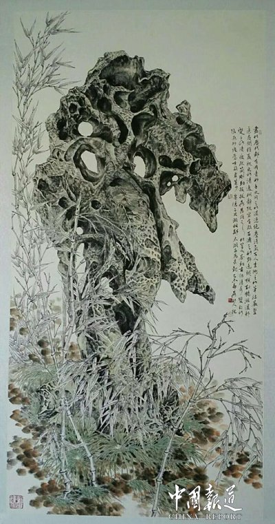 在吳竹人的作品中,或竹石相間,或竹鳥相間,或竹石鳥相間,總之,其中有著他自己不同別人的深切感受和體驗,這里寄托著畫家濃濃的鄉(xiāng)情,給予人們獨特的體味,這也是他與眾不同的格調(diào)。他說:"竹有七德------‘竹身形挺直,寧折不彎,是曰正直。竹雖有竹節(jié),卻不止步,是曰奮進。竹外直中空,襟懷若谷,是曰虛懷。竹有花不開,素面朝天,是曰質(zhì)樸。竹超然獨立,頂天立地,是曰卓爾。竹雖曰卓爾,卻不似松,是曰善群。竹載文傳世,任勞任怨,是曰擔(dān)當。"竹子是中國品格與美德的物質(zhì)載體,是君子的象征。' "如今,又有多少人有吳竹人的孜孜不倦精神呢?一半可能都談不上。也許,現(xiàn)在的我們,過于年少輕狂;過于浮躁;過于放縱;過于懵懂。自己失去了內(nèi)心的那份寧靜。獲許是時過鏡遷吧,在互聯(lián)網(wǎng)、大數(shù)據(jù)的今天,生活節(jié)奏不斷加快,生命原本的味道卻與我們漸行漸遠。一些所謂的新事物境竟將我們中華上下五千年的傳統(tǒng)文化取而代之,這是我們該做的嗎?文化是一個國家和民族精神的延續(xù),而優(yōu)秀的傳統(tǒng)文化更是一個國家和民族文化與精神層面的集中表達,具有深遠的意義。在我國歷史發(fā)展的長河中,形成了許多優(yōu)秀的傳統(tǒng)文化,它們是我國珍貴的文化寶藏。 吳竹人的初心依舊如此,簡單卻閃耀著偉大。 既傳遞了文化火炬,又讓那星星之火燃起了新希望。倒不如說他不僅將我們中華民族的傳統(tǒng)文化傳承下去,為社會作出貢獻,還在傳承的路上越走越遠,其中也加入他自己的一些東西。這不是他取得的成就有多大,而是一顆心,不被世俗侵擾的一顆心。不忘初心,繼續(xù)前行,為竹之正氣,再創(chuàng)佳績!你是安徽之驕子、中國之驕子。