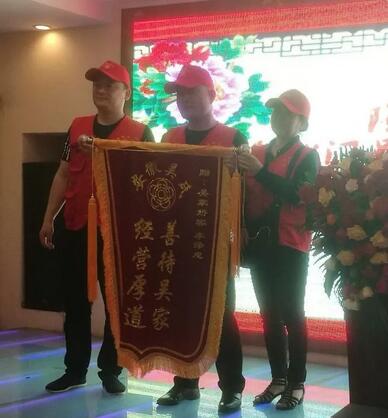 頒譜大典會(huì)場(chǎng)設(shè)在二樓大廳。一進(jìn)大廳,就是簽到臺(tái),參加大典的宗親和嘉賓簽名留念、領(lǐng)取禮品,孝友堂的宗親還領(lǐng)取統(tǒng)一定制的馬甲、太陽(yáng)帽。大廳里布置的喜氣洋洋,就餐的餐桌也是開(kāi)會(huì)的會(huì)議桌,擺放14桌。主席臺(tái)背景是電子大屏幕,上面顯示“隆重慶祝合肥北門(mén)吳氏孝友堂頒譜大會(huì) 歡迎宗親回家“紅色大字。主席臺(tái)中間擺放講臺(tái),講臺(tái)上面放置鮮花。從大廳門(mén)口通往主席臺(tái)的過(guò)道上鋪著紅地毯,過(guò)道兩邊擺放木質(zhì)燈架,上面掛著大紅燈籠,氣氛熱烈、喜慶。