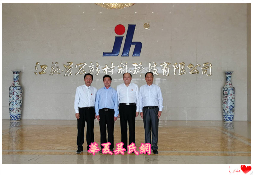 2018年5月7日,南陽吳氏文化研究會會長吳雷一行四人,應(yīng)宿遷吳氏至德文化研究會的邀請,前往宿遷交流學(xué)習(xí),受到了宿遷至德文化研究會會長吳培龍、副會長吳良軍等宗親的熱情款待。還參觀了吳培龍董事長的“景宏新材料科技有限公司”,并在公司會議室就吳文化的傳承與弘揚進行了深入的交流與探討。
