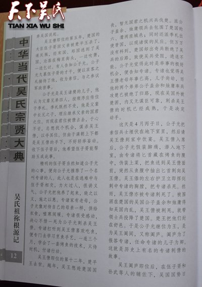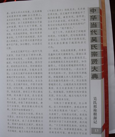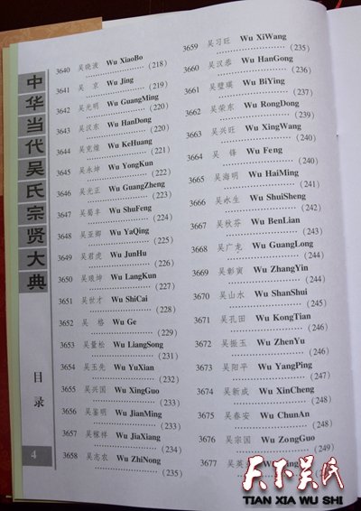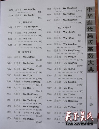 何謂“宗賢”?“宗賢”就是宗族的賢才。通俗一點說,就是各個宗支里既賢明又有才能的人。這種賢才雖有大小之分,卻無尊卑之別。歷史上岳飛報國是賢,孟母教子亦是賢;廉頗負荊是賢,孔融讓梨亦是賢,千百年來同樣載諸史書,流傳口舌。因而,本大典不受舊的傳統(tǒng)觀念束縛,不為世俗左右,重在一個“賢”字。既收錄吳氏中省、軍級以上的高官名將,又收錄造福一方的科局級及相當此級職稱(均含副職)以上的中層人士;既收錄吳氏中名聞遐邇的專家、教授、高級文化科研人員和國營與民營企業(yè)家,又收錄默默奉獻、名不見經(jīng)傳的地方族彥鄉(xiāng)賢。都是一個目的:彰表賢士,激勵后人,以增強吳氏宗親的凝聚力,蓄積力和親和力。