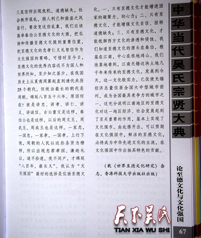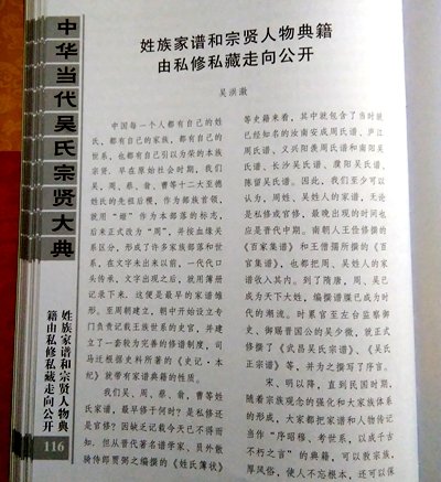 天下吳氏訊(吳蜀豐)【編者按】本期推薦文章:《談家譜》?!缎兆寮易V和宗典人籍由私修私藏走向公開》作者吳洪激?!吨恋抡撆c文化強國》作者吳洪激。《文化分源走向文化趨同》作者吳洪激。
