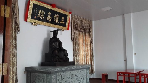 欣逢時代更新,物華天寶,碣邑鄉(xiāng)井延陵世家,宗親群力,賢達垂范。共襄美舉,于衛(wèi)城南隅、古渡之濱,興建吳文化之樓閣。斯樓襟錦江而面南海,道環(huán)城而達八方??脖毙B護其后,離南朱雀案其前。四層高標有重檐翼宇;聳構巍峨顯虎踞龍盤。登其極頂呈山明水秀,遠近包羅感拔地參天。千載宏圖,遂成形勝。堂上祀太伯銅像,懸乾隆御匾,旨在傳承三讓美德,化育人文。貽謀后昆,重振家聲于江城。