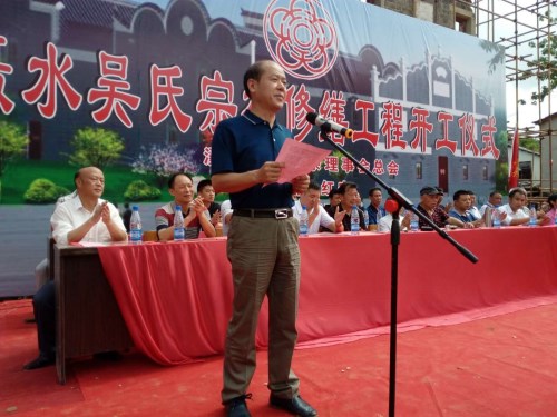 最后,灄水吳氏宗親聯(lián)誼總會(huì)會(huì)長講話并宣布灄水吳氏宗祠修繕工程正式開工!