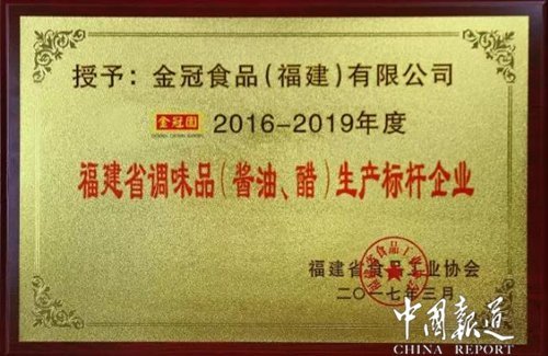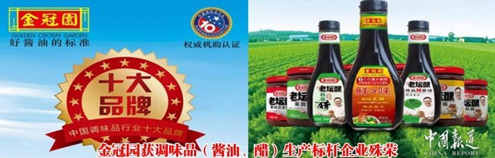 公司秉承“以質量求生存、以信譽求發(fā)展、以市場為導向、以服務為己任”的企業(yè)宗旨。 堅持以“創(chuàng)新、創(chuàng)優(yōu)、創(chuàng)名牌”的發(fā)展理念,經過多年來的不斷努力,先后通過ISO9001國際質量管理體系認證,HACCP食品安全管理體系認證,ISO14001環(huán)境管理體系認證和QS認證。在全國同行業(yè)中,成為首批獲得國家質量安全生產許可證的企業(yè)之一,獲得“07年中國質量500強”、“省級衛(wèi)生A級單位”、“國家質量達標食品”、“質量第一,誠信經營企業(yè)” 、2002年“金冠園”醬油被授予“國家免檢產品”稱號;獲得2003-2004第十叁屆中國廚師節(jié)指定調味品稱號;同時公司也注重品牌建設,“金冠園”牌先后獲得“中國馳名商標”、“中國星火計劃項目”、“全國食品工業(yè)龍頭食品企業(yè)”、“食品衛(wèi)生A級單位”、“中國名牌產品”、“中國星火計劃產品”、“工商企業(yè)信用良好企業(yè)”、省市“先進企業(yè)”等榮譽稱號。產品暢銷全國各地并大量出口,深受廣大消費者青睞。