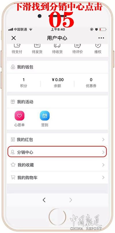 微客本人在商城消費也可享受傭金。如何成為金冠園微客?①關注金冠園微信公眾號,②點擊底部金冠園商城,③進入商城后點擊底部用戶中心,④進入用戶中心,⑤下滑找到分銷中心點擊,⑥輸入手機號注冊成金冠園微客。