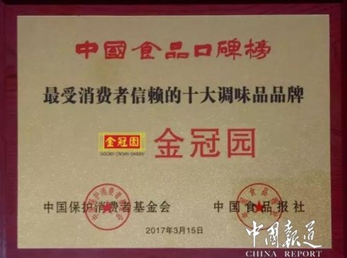 公司秉承“以質(zhì)量求生存、以信譽(yù)求發(fā)展、以市場(chǎng)為導(dǎo)向、以服務(wù)為己任”的企業(yè)宗旨。 堅(jiān)持以“創(chuàng)新、創(chuàng)優(yōu)、創(chuàng)名牌”的發(fā)展理念,經(jīng)過(guò)多年來(lái)的不斷努力,先后通過(guò)ISO9001國(guó)際質(zhì)量管理體系認(rèn)證,HACCP食品安全管理體系認(rèn)證,ISO14001環(huán)境管理體系認(rèn)證和QS認(rèn)證。在全國(guó)同行業(yè)中,成為首批獲得國(guó)家質(zhì)量安全生產(chǎn)許可證的企業(yè)之一,獲得“07年中國(guó)質(zhì)量500強(qiáng)”、“省級(jí)衛(wèi)生A級(jí)單位”、“國(guó)家質(zhì)量達(dá)標(biāo)食品”、“質(zhì)量第一,誠(chéng)信經(jīng)營(yíng)企業(yè)” 、2002年“金冠園”醬油被授予“國(guó)家免檢產(chǎn)品”稱號(hào);獲得2003-2004第十叁屆中國(guó)廚師節(jié)指定調(diào)味品稱號(hào);同時(shí)公司也注重品牌建設(shè),“金冠園”牌先后獲得“中國(guó)馳名商標(biāo)”、“中國(guó)星火計(jì)劃項(xiàng)目”、“全國(guó)食品工業(yè)龍頭食品企業(yè)”、“食品衛(wèi)生A級(jí)單位”、“中國(guó)名牌產(chǎn)品”、“中國(guó)星火計(jì)劃產(chǎn)品”、“工商企業(yè)信用良好企業(yè)”、省市“先進(jìn)企業(yè)”等榮譽(yù)稱號(hào)。產(chǎn)品暢銷全國(guó)各地并大量出口,深受廣大消費(fèi)者青睞。
