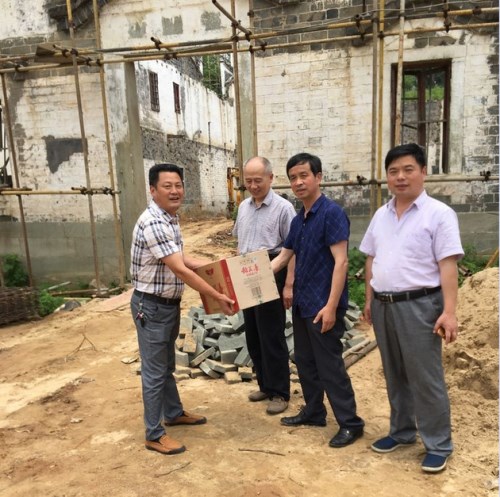 2018年6月9日,紅安縣公安局原副局長(zhǎng)吳亞輝宗親和灄水吳氏宗親聯(lián)誼理事會(huì)紅安分會(huì)副會(huì)長(zhǎng)吳祖輝、吳恒祥以及吳德喜等宗親一行,驅(qū)車來到鐵袁家灄水吳氏祠堂,關(guān)注祠堂的修繕進(jìn)程,慰問一線施工的工人們。