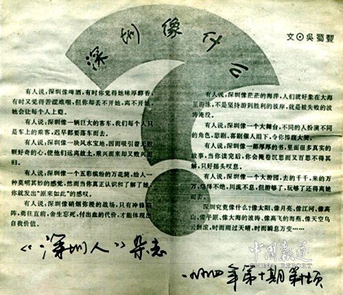 她們有寶安﹑龍華﹑龍崗﹑觀瀾﹑大朗﹑羅湖﹑及東莞﹑廣州﹑佛山等地來信,有分別來自四川﹑湖南﹑湖北﹑廣西﹑海南﹑貴州﹑廣東河源﹑韶關(guān)等地的打工仔﹑打工妹,信中多是反應(yīng)打工生活中的酸甜苦辣,她們背景離鄉(xiāng),離開親人來到深圳打工,她們?yōu)樯钲谀姆瞰I(xiàn)自己的熱情,奉獻(xiàn)自己的青春,成為一群無私奉獻(xiàn)的特區(qū)建設(shè)者,于是我并寫了題為《我們……》在《南山日報》副刊發(fā)出來后引起打工們的強烈反響,后來在《深圳人》雜志發(fā)表一篇題為《深圳像什么?》被特區(qū)打工仔們認(rèn)為深度好文廣為傳閱。