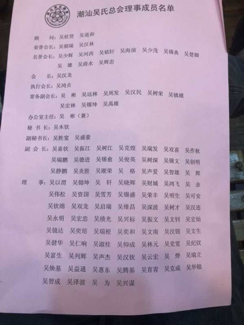 這次代表大會(huì)是潮汕吳氏人的一次盛會(huì),是一次團(tuán)結(jié)奮進(jìn),繼往開(kāi)來(lái)的盛會(huì),更是潮汕吳氏發(fā)展史上具有里程碑意義的盛會(huì)。相信潮汕會(huì)在漢龍會(huì)長(zhǎng)的領(lǐng)導(dǎo)下,一定會(huì)更加團(tuán)結(jié),更加和諧,吳氏事業(yè)更加蓬勃發(fā)展,成績(jī)會(huì)更輝煌!為弘揚(yáng)吳文化,傳承始祖至德精神,在新時(shí)代作出新的更大的貢獻(xiàn)!